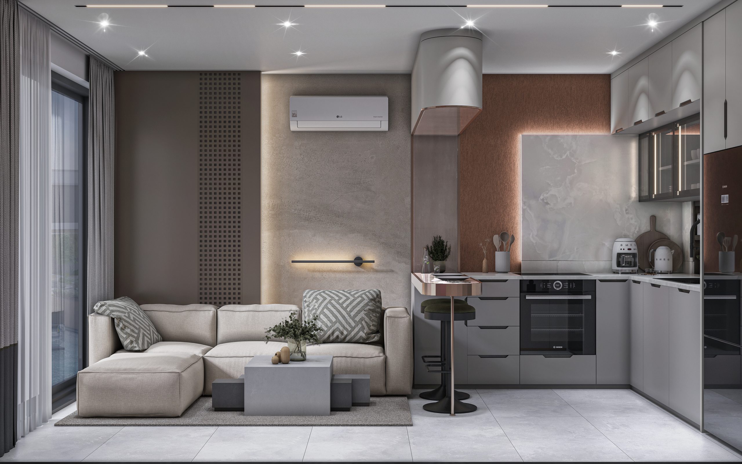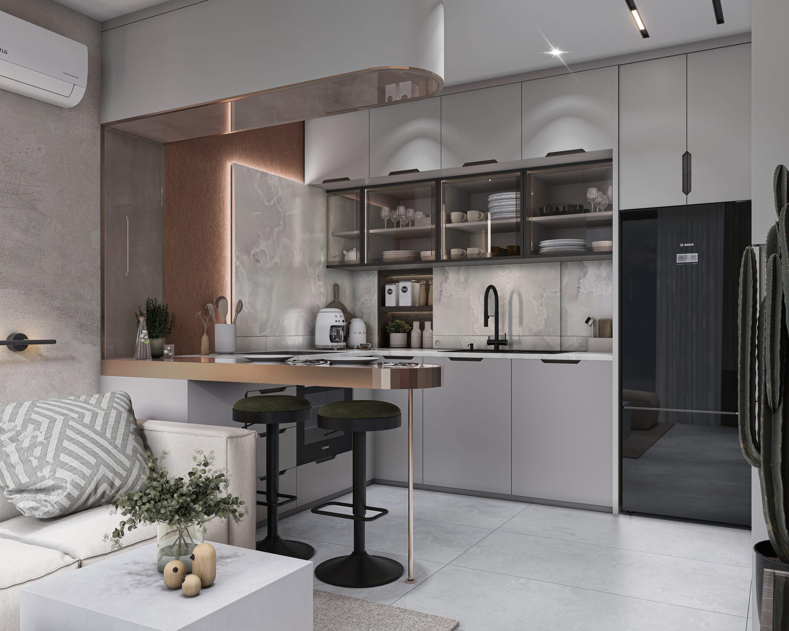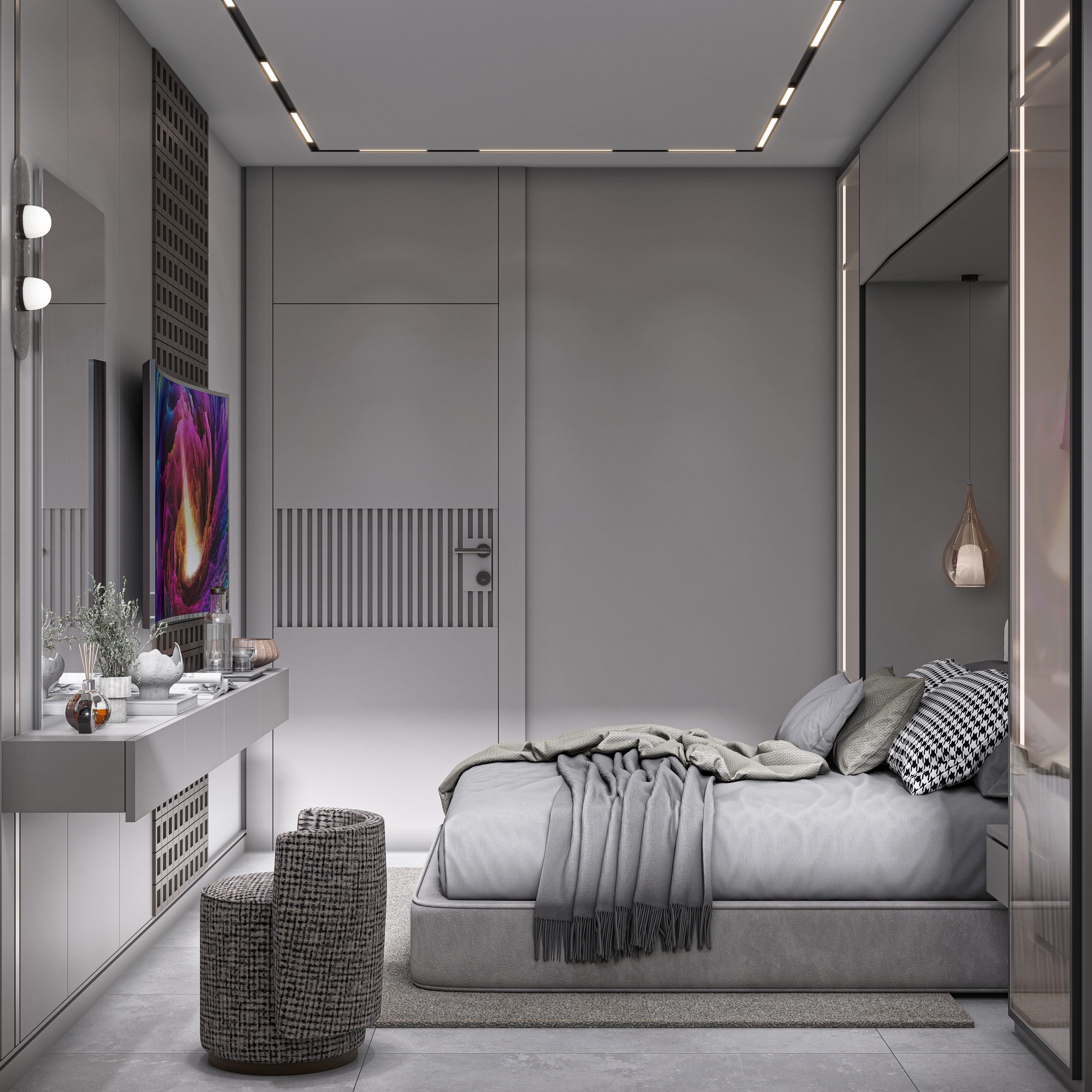 Tüm alanlar, estetik ve fonksiyonelliği ön planda tutan tasarım anlayışıyla, zarif detay ve kaliteli malzemeler kullanılarak şekillendirilmiştir.